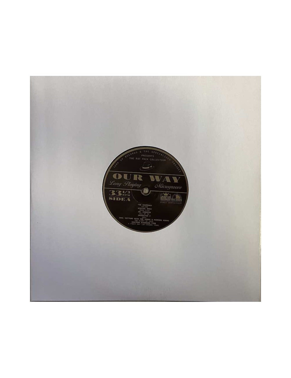 Eine weitere Compilation zugunsten des Specialized Project: Die „Our Way – Tribute To The Rat Pack“-Kollektion ist ein Muss für Fans von Ska und Croonern wie Frank Sinatra und Tony Bennett! Limitierte Auflage auf 10-Zoll-Vinyl. Offenbar war die ursprüngliche Bandangabe auf dem Label fehlerhaft oder eine Band wurde entfernt, da der erste Titel auf Seite B mit „Rude Girl Revue – My Way“ überklebt wurde.